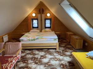 1x podkroví - hala + velký pokoj - 2 lůžka + 2 dvulůžkové ložnice (1 průchozí)