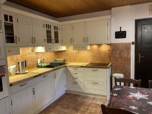 1x kuchyně s jídelnou - vestavěná trouba, mikrovlnka, čtyřplotýnková indukční varná deska, odsávač pár, varná konvice, kuchyňská linka, veškeré nádobí pro vlastní stravování, lednice, kávovar, toustovač.