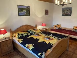 1x podkroví - hala + velký pokoj - 2 lůžka + 2 dvulůžkové ložnice (1 průchozí)